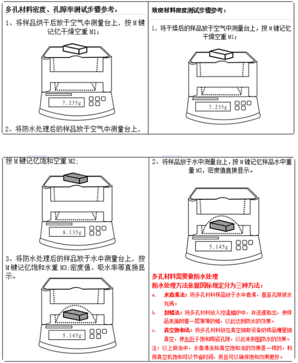 秒準科儀标(biao)準規範:根據ASTMD854-02、C359、JIS、GB/T24528、6155、24203、YBT63、ISO等(deng)标準。采用阿基(jī)米德浮力法,應(ying)🚶♀️用💜真空飽和法(fa)、煮沸飽和法、浸(jìn)漬法的操作、快(kuai)速讀取🤞量測數(shù)值。