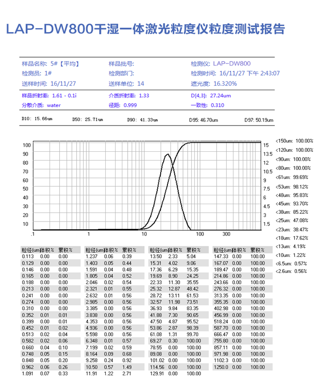 ★*的光路設計:LAP-DW800DW800擁有了*的小顆粒(lì)測試能力,高(gao)密度探測單元使(shǐ)用LAP-DW800具有*的全量程(cheng)無縫測試能力。