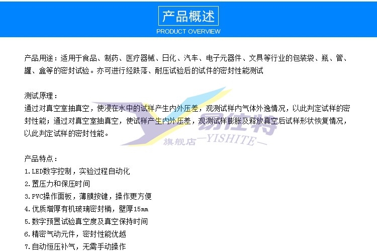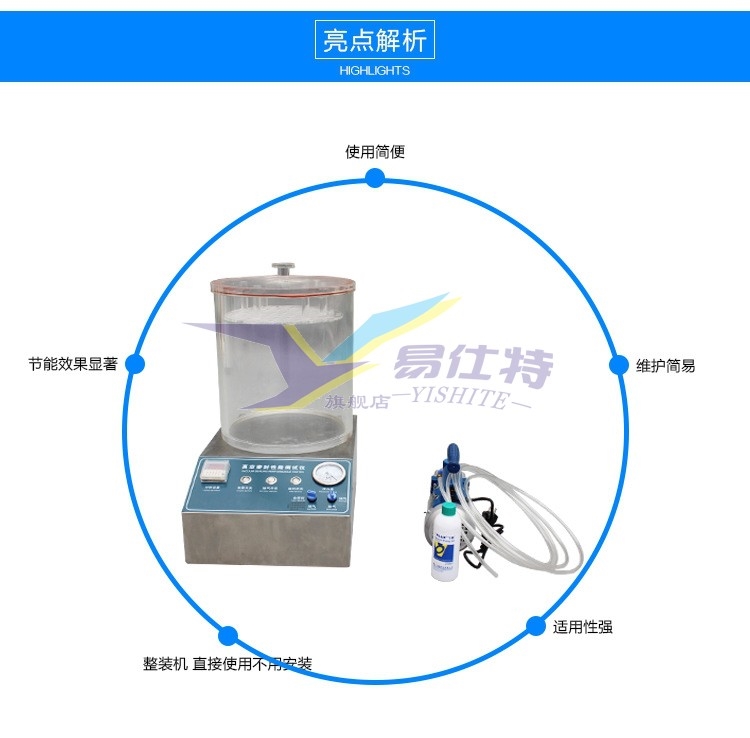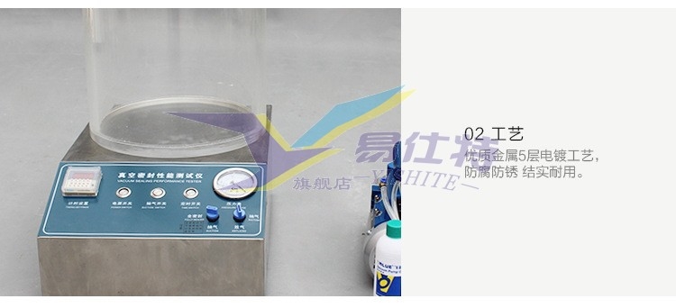 真空密(mi)封性能(néng)測試儀(yi)通過對(dui)真空室(shì)抽真空(kōng),使浸在(zài)水中的(de)試樣産(chan)生内💁外(wai)壓差,觀(guān)測試樣(yàng)内氣體(ti)外逸情(qíng)況,以此(ci)判定試(shi)樣的密(mì)封性能(neng);通過對(dui)真空室(shi)抽真空(kōng),使試樣(yang)産生内(nèi)外壓差(cha),觀測試(shi)樣膨脹(zhàng)及釋放(fàng)真空後(hòu)試樣形(xíng)狀恢複(fu)情況,以(yǐ)此判定(dìng)試🥵樣的(de)密封性(xing)能。
