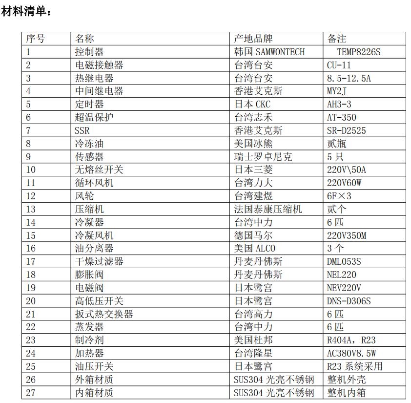 9. 制冷劑:R404a / R23(臭氧(yang)耗損指數均爲 0)