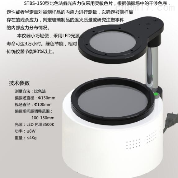 STBS-150 型比色法偏(piān)光應力儀由北(bei)京北科創展科(kē)技有限公司研(yán)制開發,是對玻(bō)璃原(yuan)理檢查玻璃或(huo)透明塑料制品(pǐn)内應力的儀器(qì)。