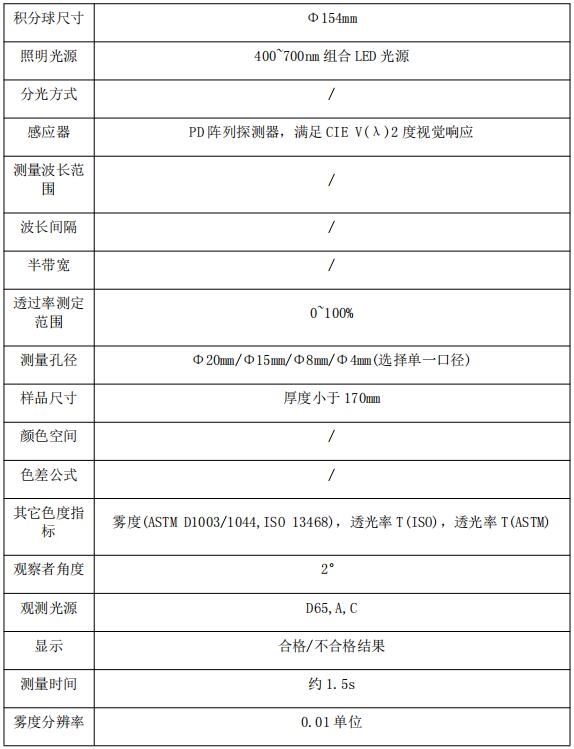 能夠滿足不同(tong)用戶的測試标(biāo)準要求,符合标(biao)準:ASTMD1003/1044,ISO 13468,ISO14782,GB/T 2410,JJF 1303-2011,CIE 15.2,JISK7105,JIS K7361,JIS K 7136