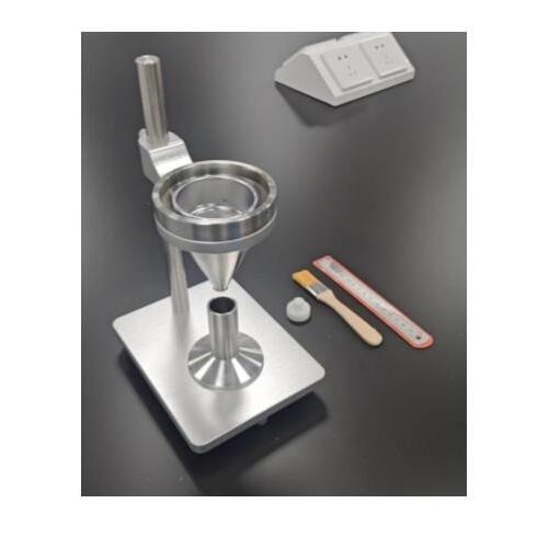 松裝密度(du)測試儀主要(yao)由孔徑爲0.25 mm的(de)篩網、漏鬥、25 mL的(de)量簡、底座、支(zhi)架等組成。圖(tú)B.1爲儀器的示(shi)意圖,圖B.2爲漏(lou)鬥和量簡的(de)結構圖。儀器(qì)安裝時要求(qiu)漏鬥放到漏(lou)鬥支架上❌,在(zai)漏鬥上方放(fàng)置篩網,将量(liang)簡正對漏鬥(dòu)口♋放于底座(zuo)上(定位塊定(dìng)位),保證量簡(jiǎn)和漏鬥同心(xin),漏♈鬥的底部(bu)距量簡頂部(bù)爲20 mm,試驗時應(yīng)保證松裝密(mì)度⭕測試儀水(shuǐ)平放置(水準(zhun)泡校準)。
